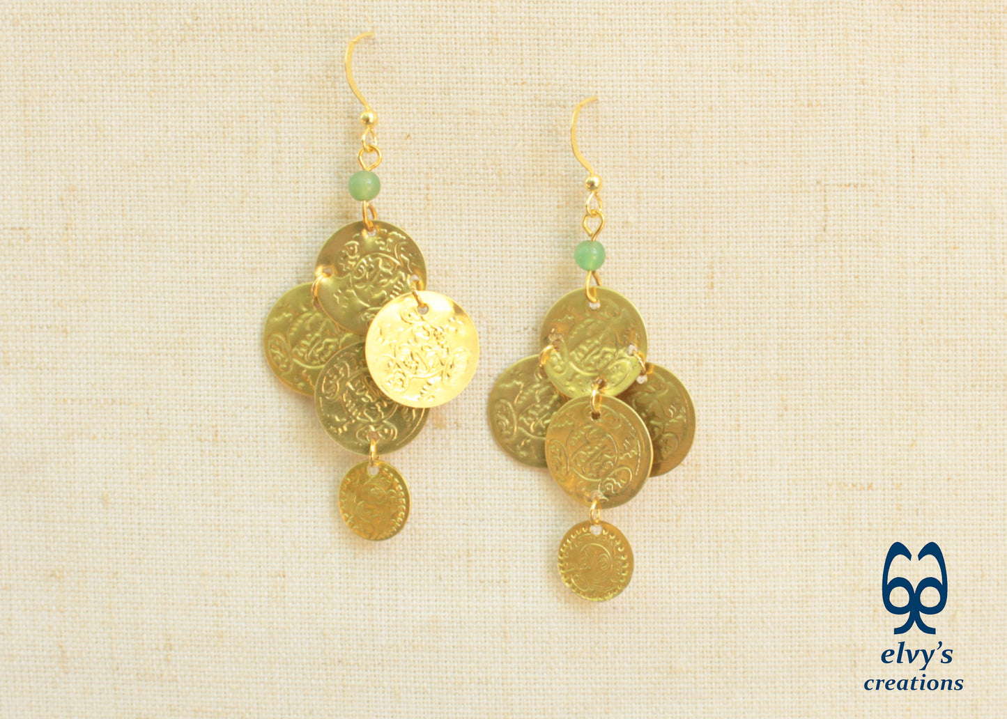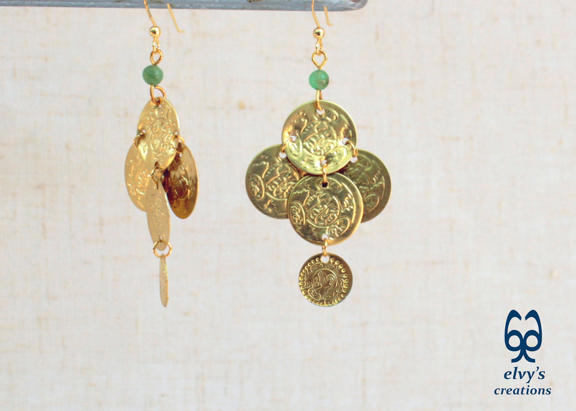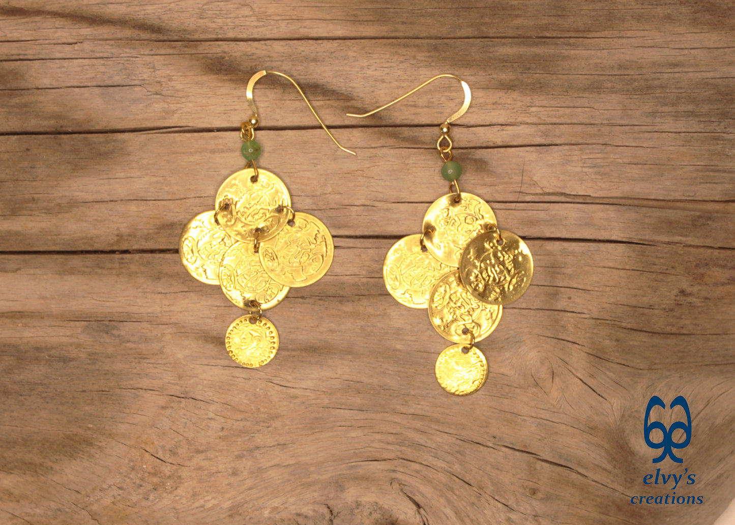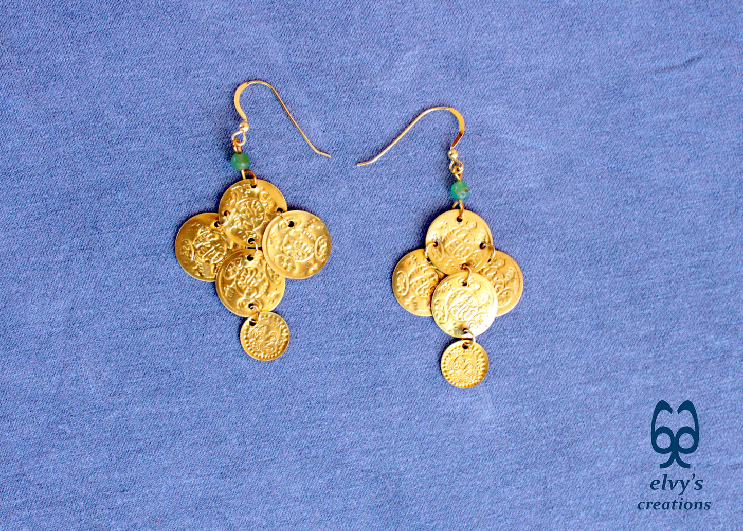 Τα χειροποίητα σκουλαρίκια είναι διακοσμημένα με πράσινο Χρυσοπράσιο και χρυσά χάλκινα φλουριά και οι γάντζοι είναι από ασήμι υποαλλεργικό.