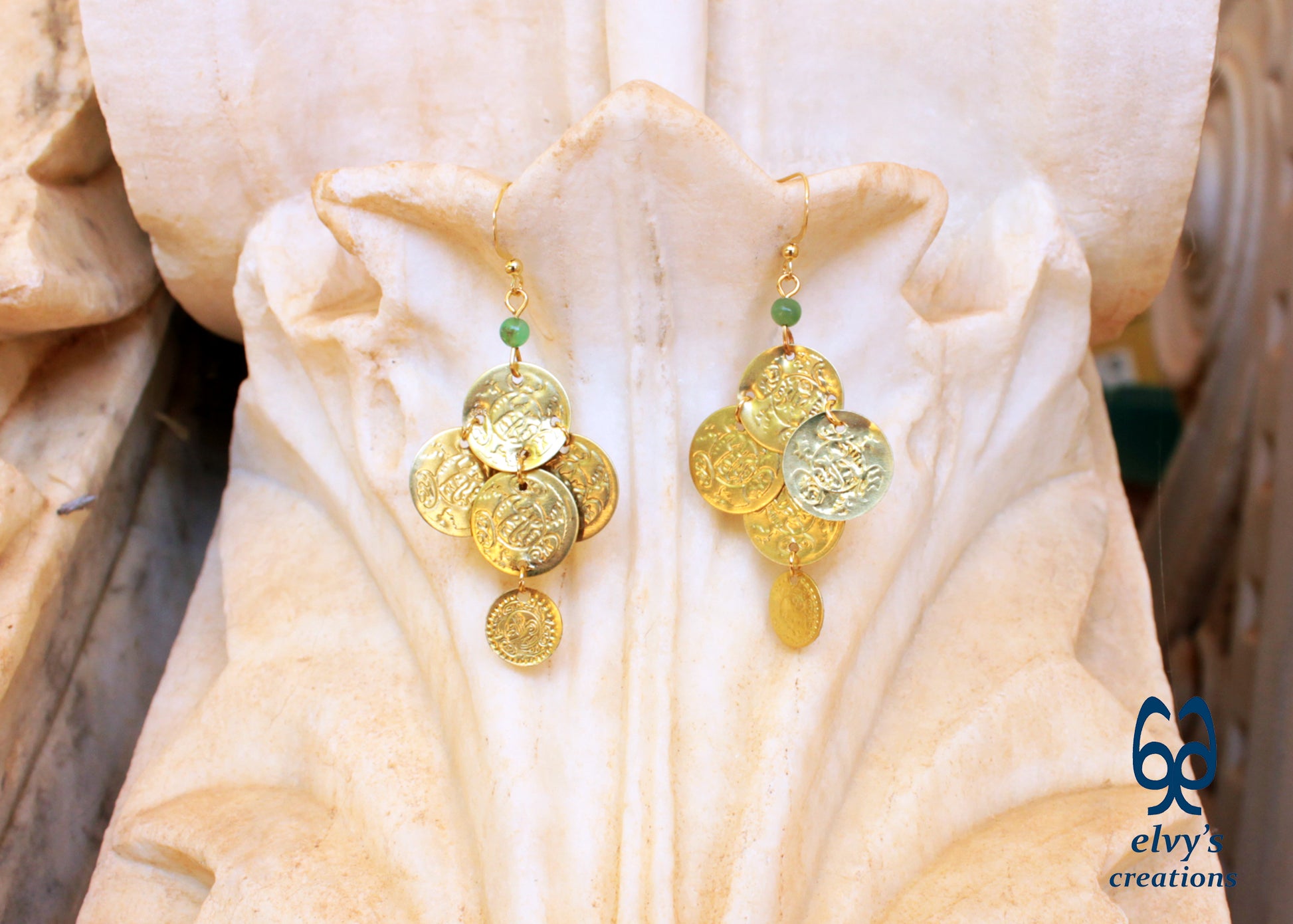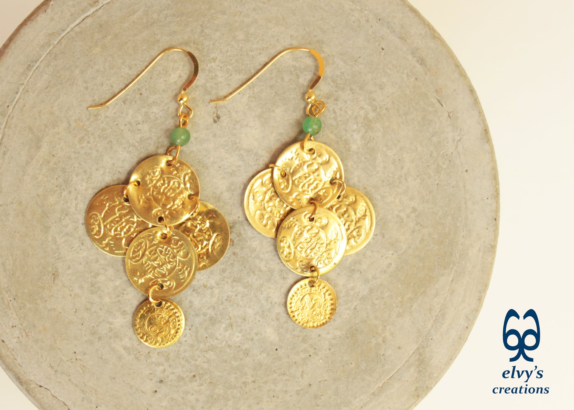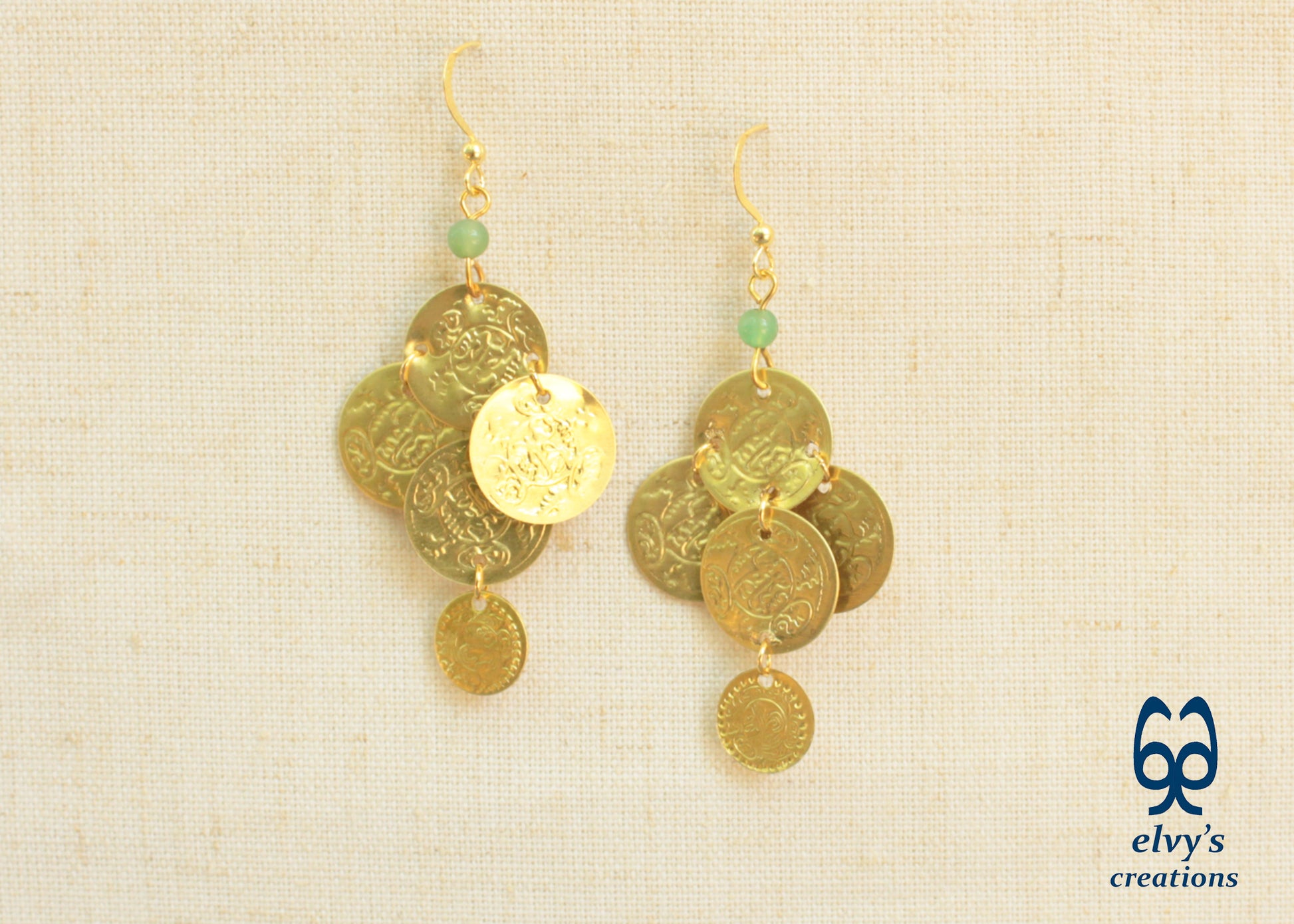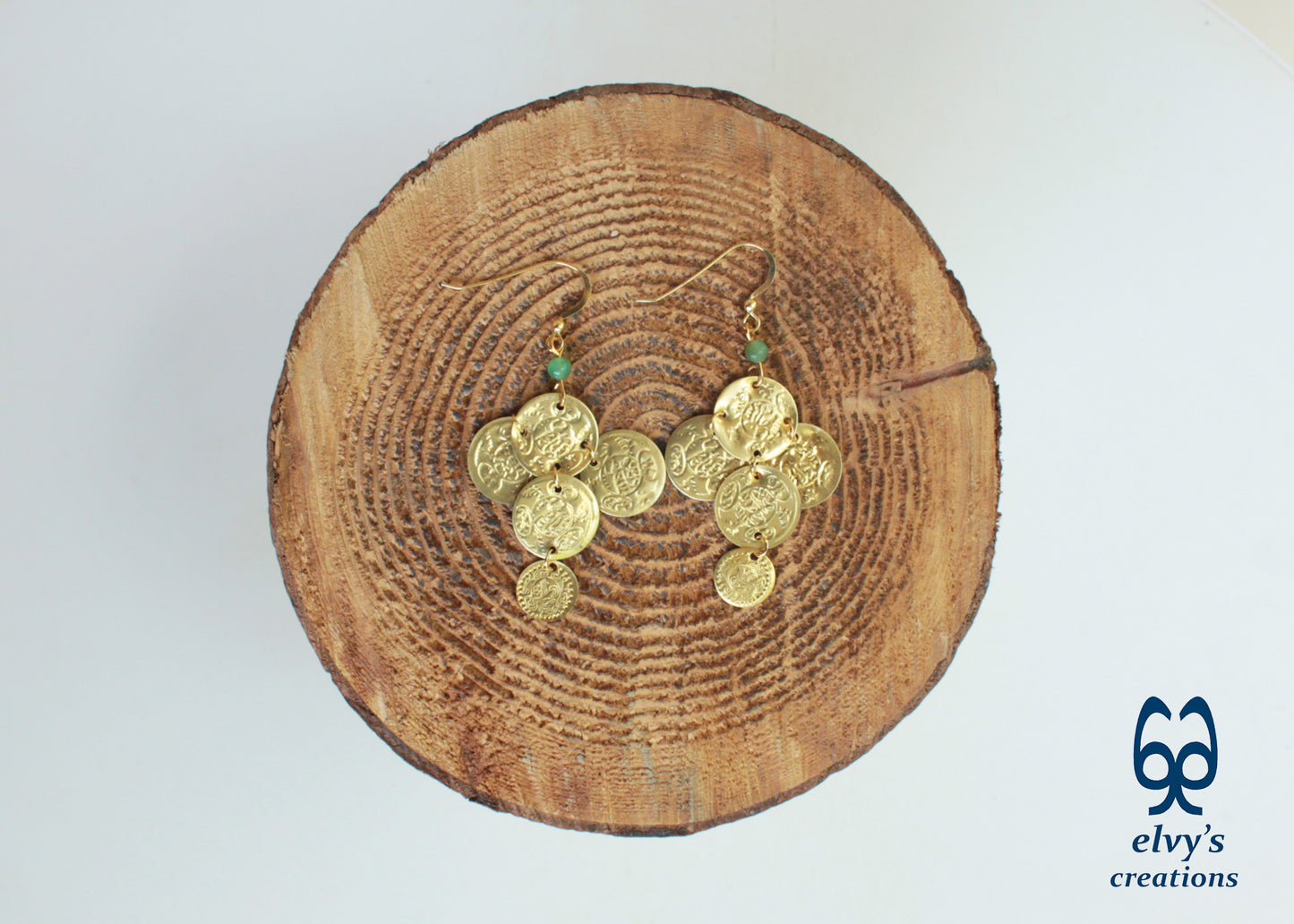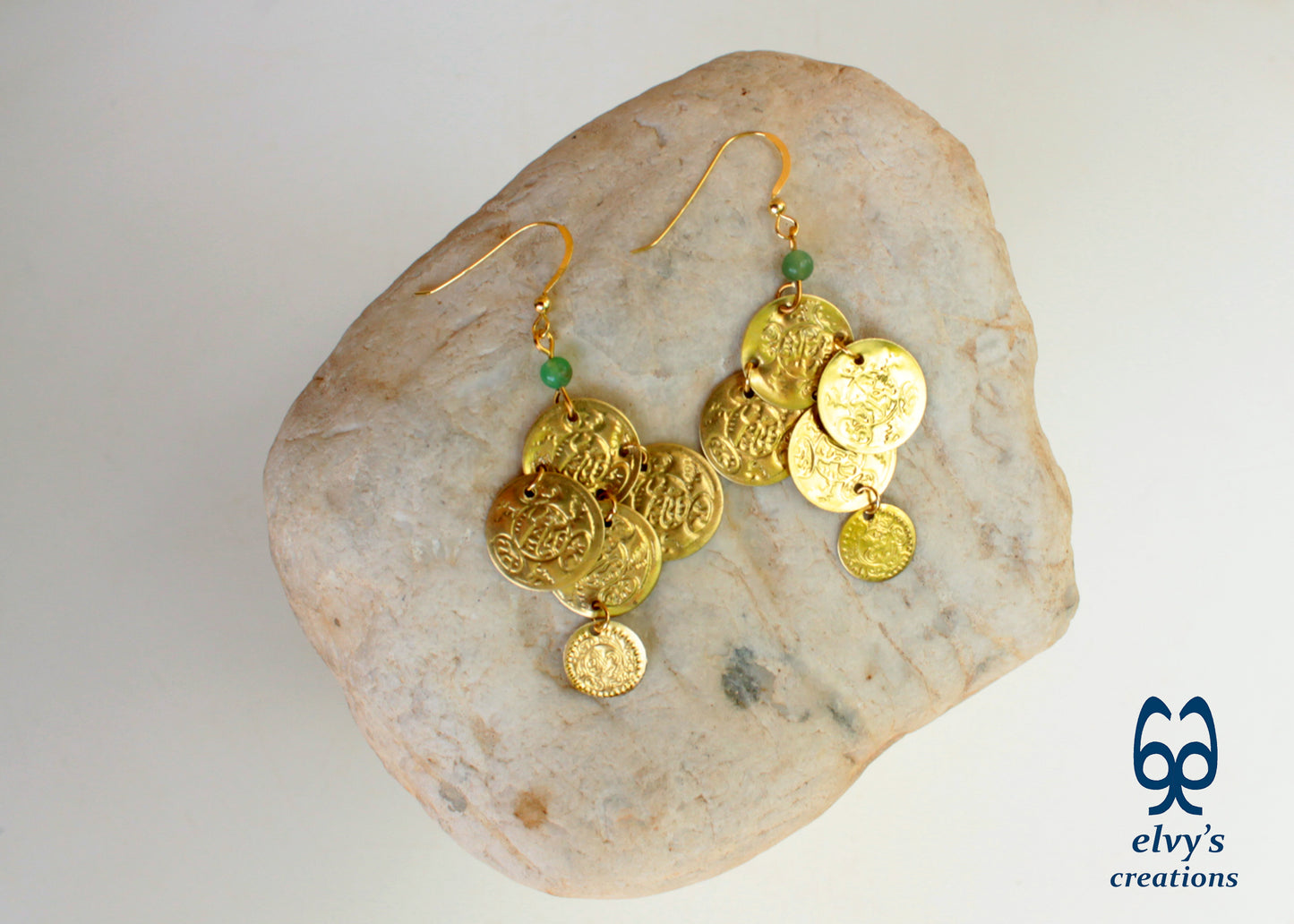Τα χειροποίητα σκουλαρίκια είναι διακοσμημένα με πράσινο Χρυσοπράσιο και χρυσά χάλκινα φλουριά και οι γάντζοι είναι από ασήμι υποαλλεργικό.