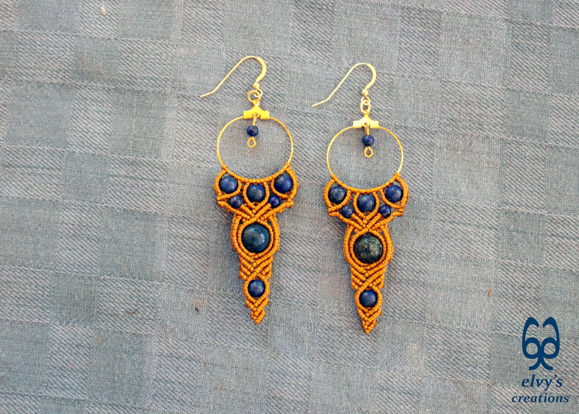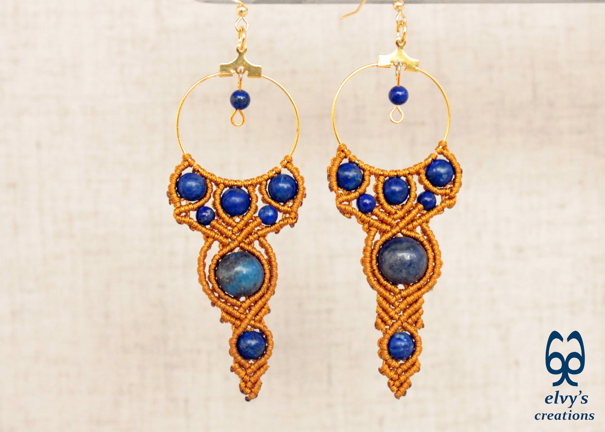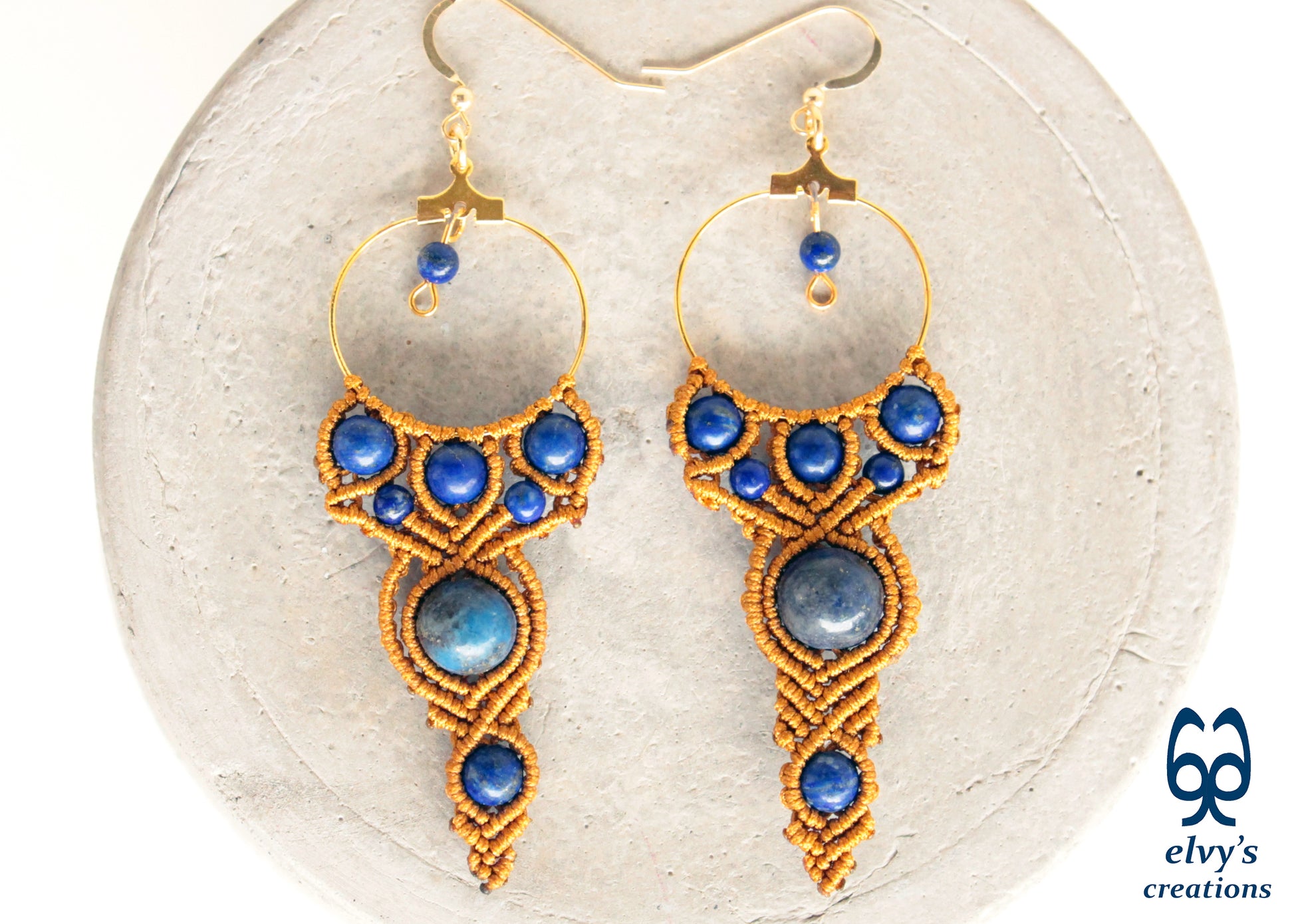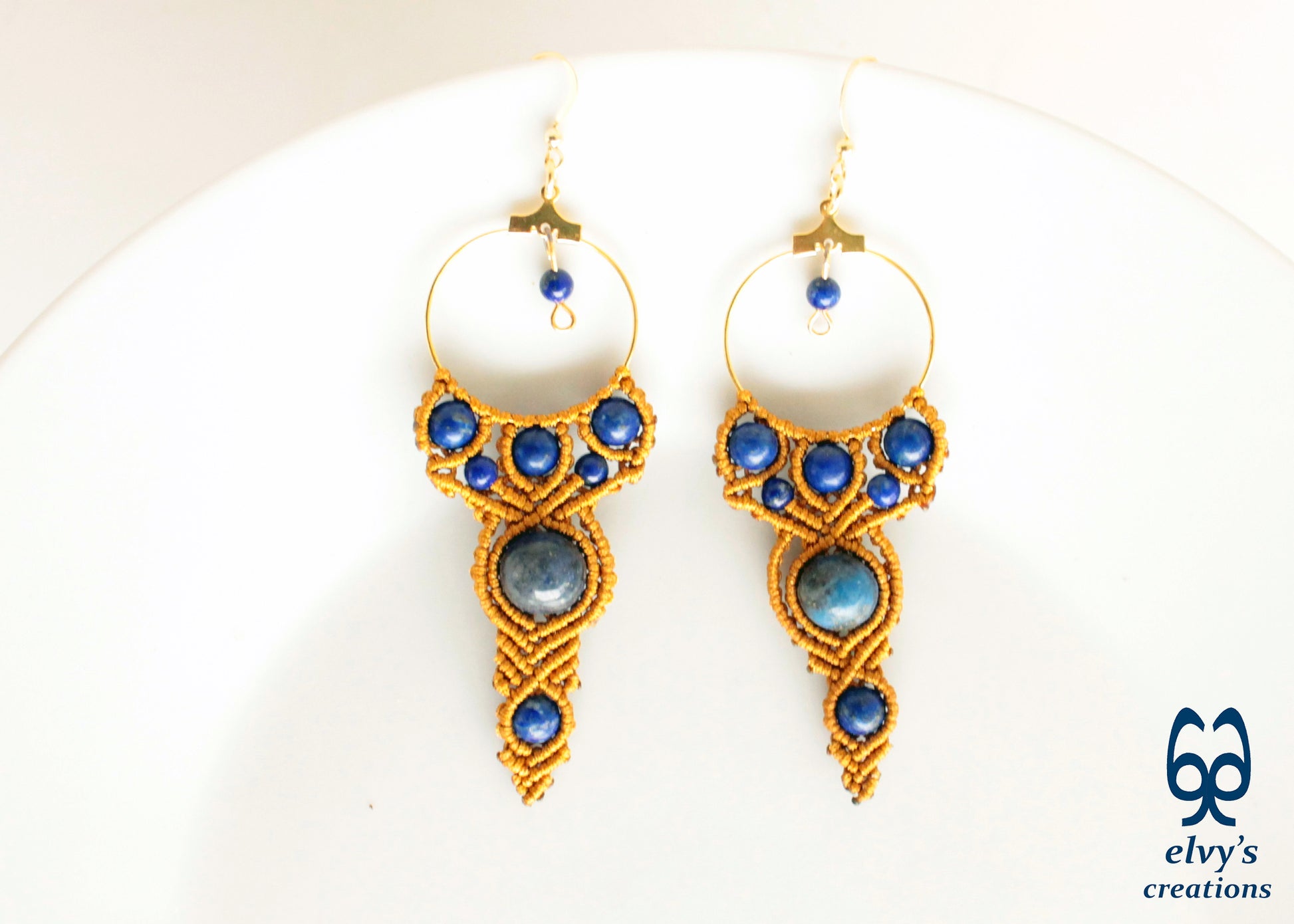 Χρυσά Μακραμέ Σκουλαρίκια με Λάπις Λάζουλι