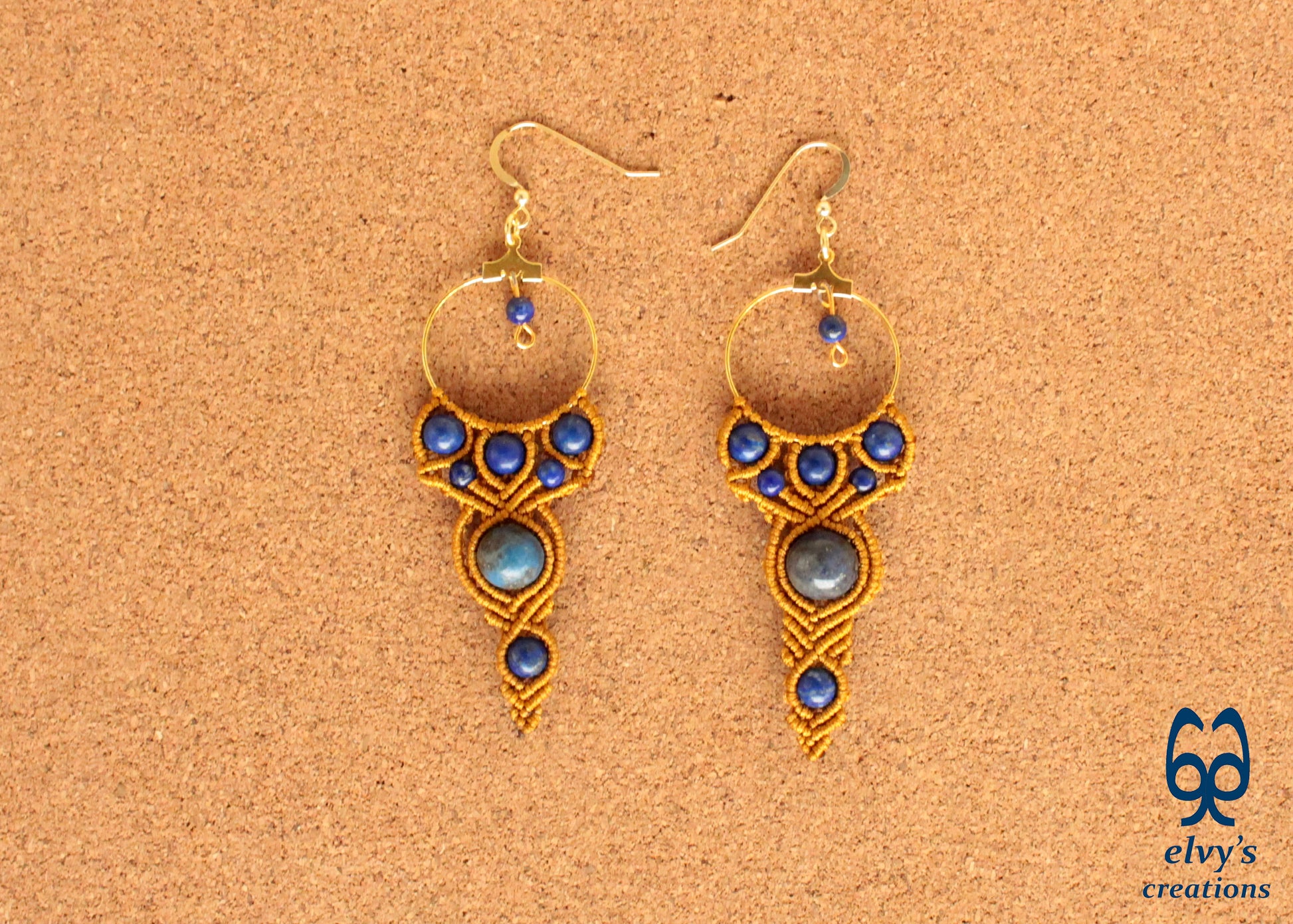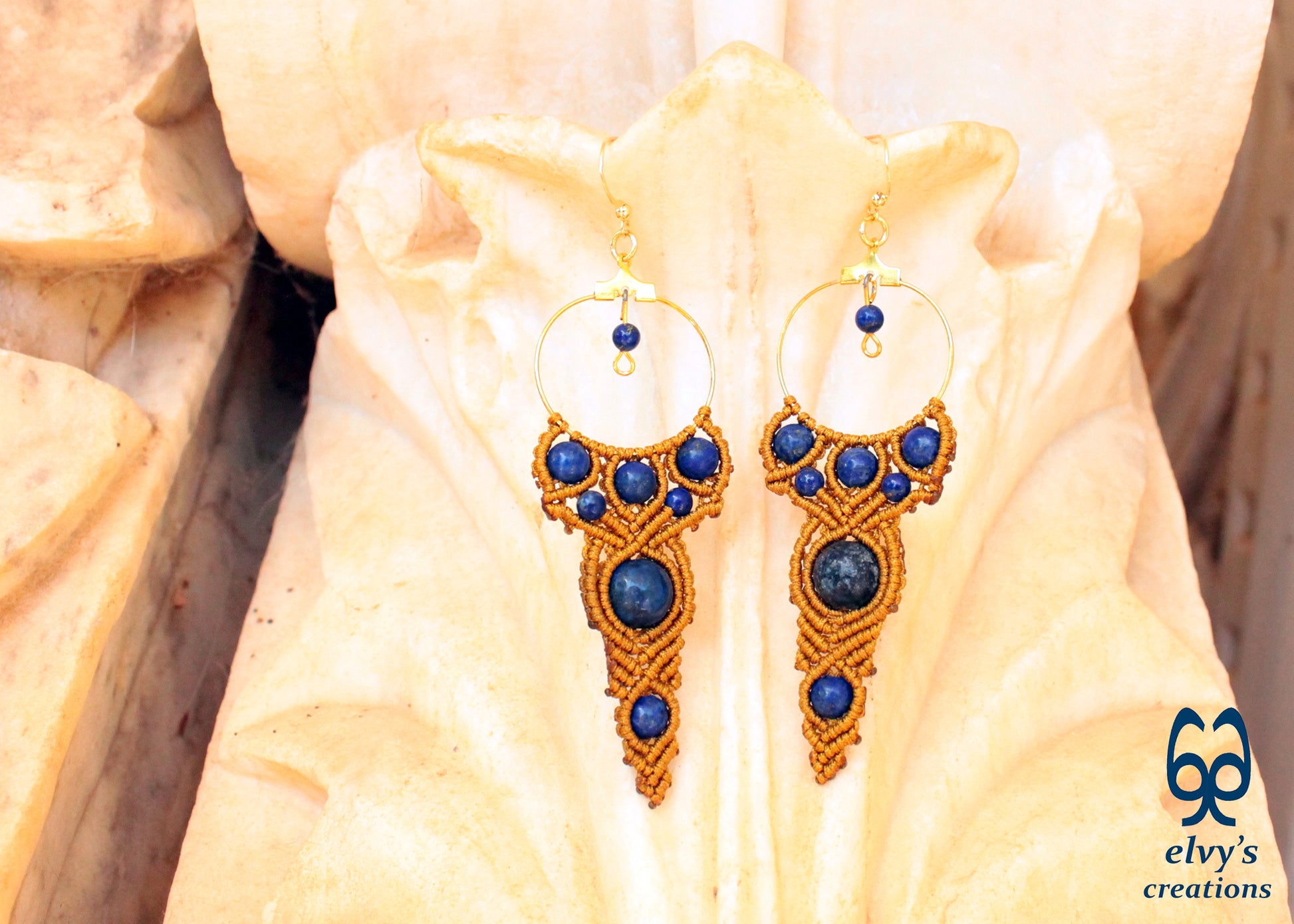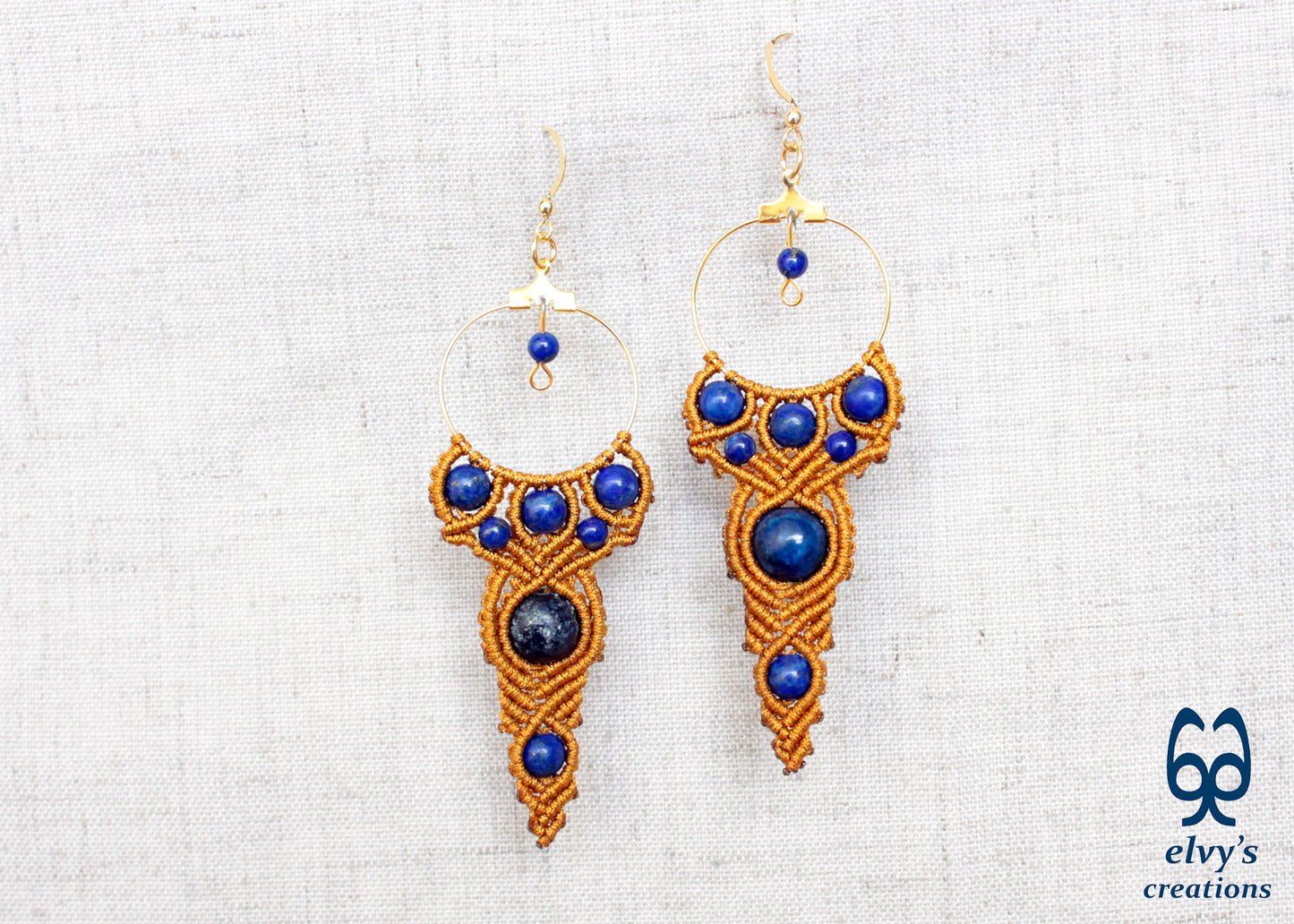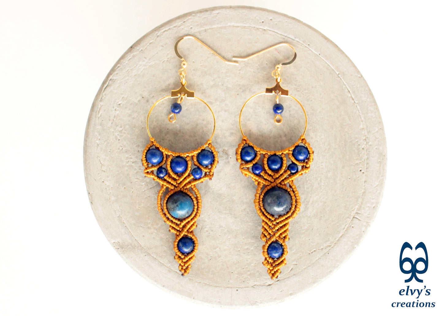 Χρυσά Μακραμέ Σκουλαρίκια με Λάπις Λάζουλι