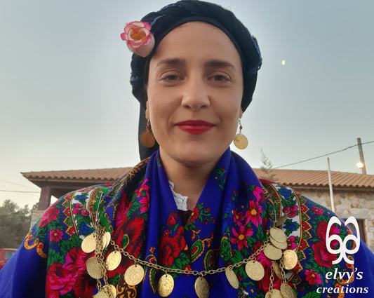 Gold Traditional Earrings with Sodalite and Double Coins